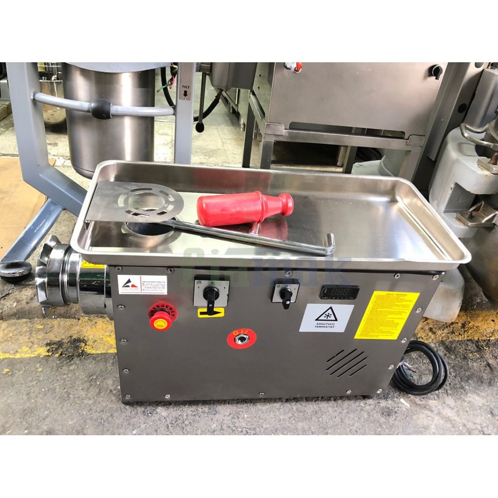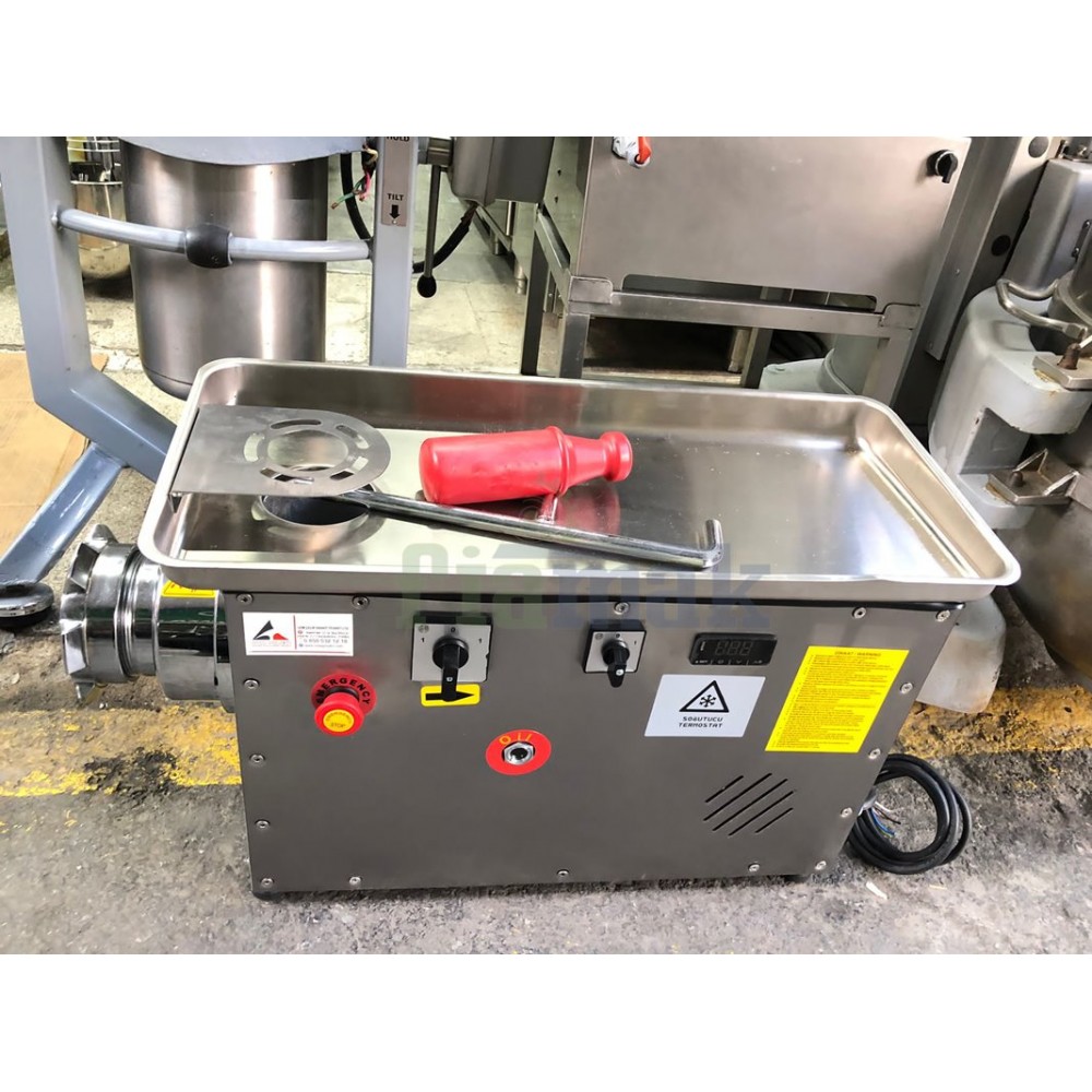 Güçlü dökme demir redüktörlü et kıyma makinesi. İleri-geri çalıştırma özelliği ile no 32 kıyma makinesi.