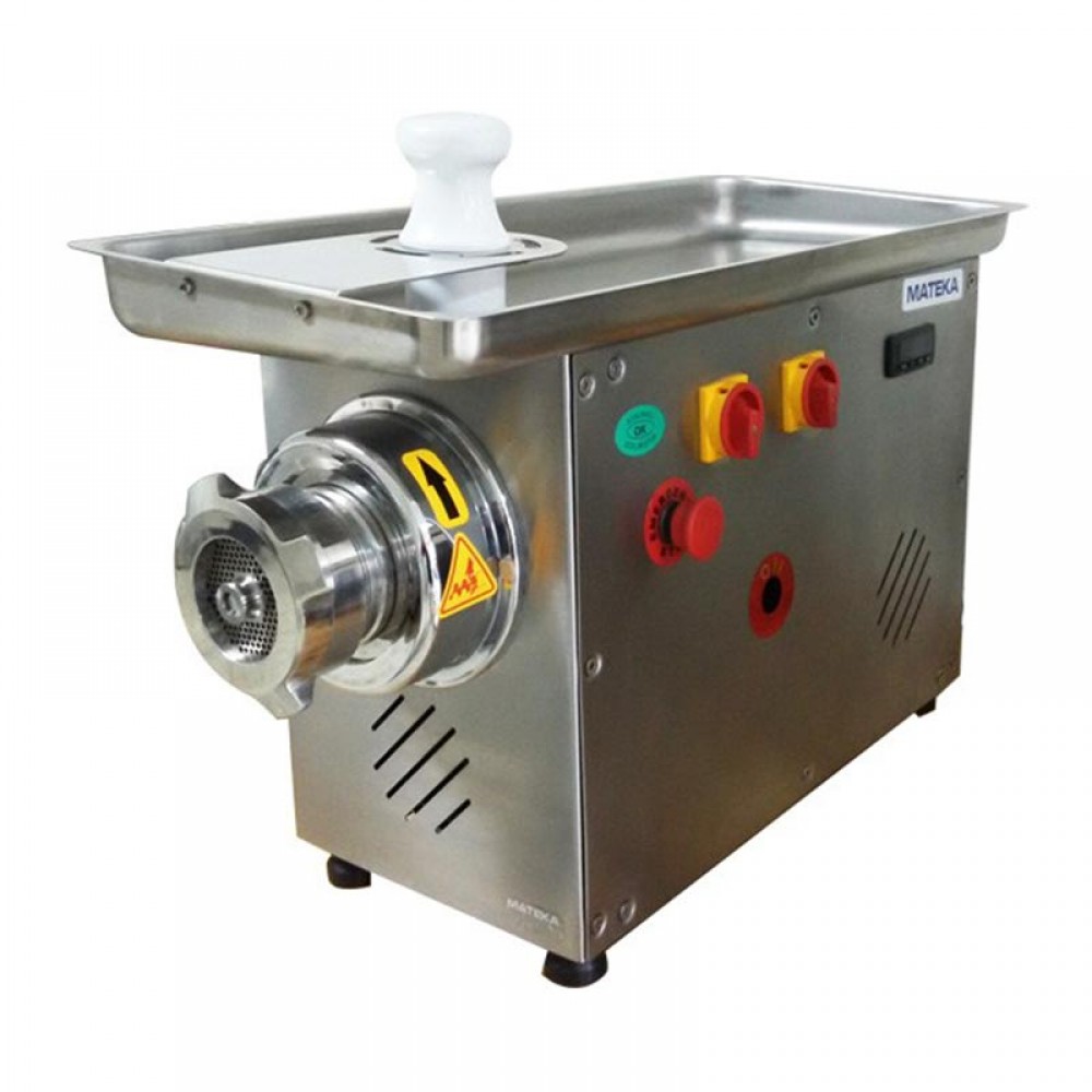 Mateka et kıyma makinesi el koruma aparatı et itme tokmağı birlikte kullanıldığında etkin koruma sağlar. Kıyma makinesinin titreşimi azaltan plastik ayakları bulunur. Redüktör yağ göstergesi bulunan mateka kıyma makinesi profesyonel kullanıma uygun olup 380v elektrikle çalışır .